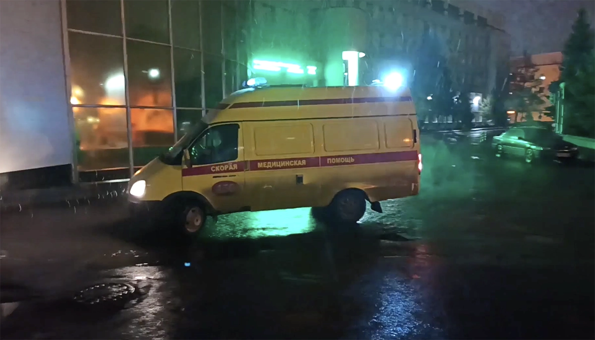 Две кареты скорой помощи подъехали к зданию Минздрава Омской области после того, как весь день возили пациентов с COVID-19 по городу, но их не приняли ни в одном из медучреждений.