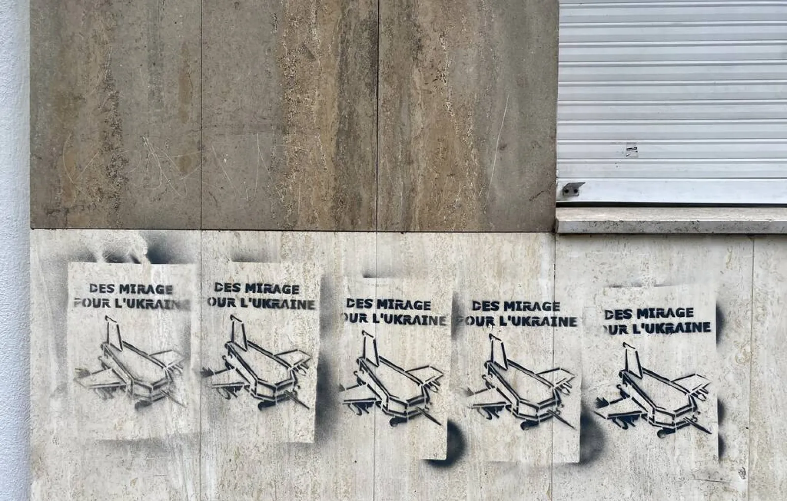 На фасаде здания рядом с офисом газеты Liberation в Париже появились граффити, изображающие истребители Mirage, обещанные Францией Украине, в форме гробов. Об этом написало само издание, подчеркнув, что рисунки бросаются в глаза на пути к редакции. Пять крупных изображения выполнены через трафарет и показывают самолет в форме гроба с надписью "Миражи для Украины".