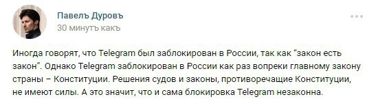 «Однако речь идет о передаче универсальных ключей шифрования с целью последующего бесконтрольного доступа к переписке неограниченного круга лиц. A это — прямое нарушение 23-й статьи Конституции о праве каждого на тайну переписки», — добавил Дуров.