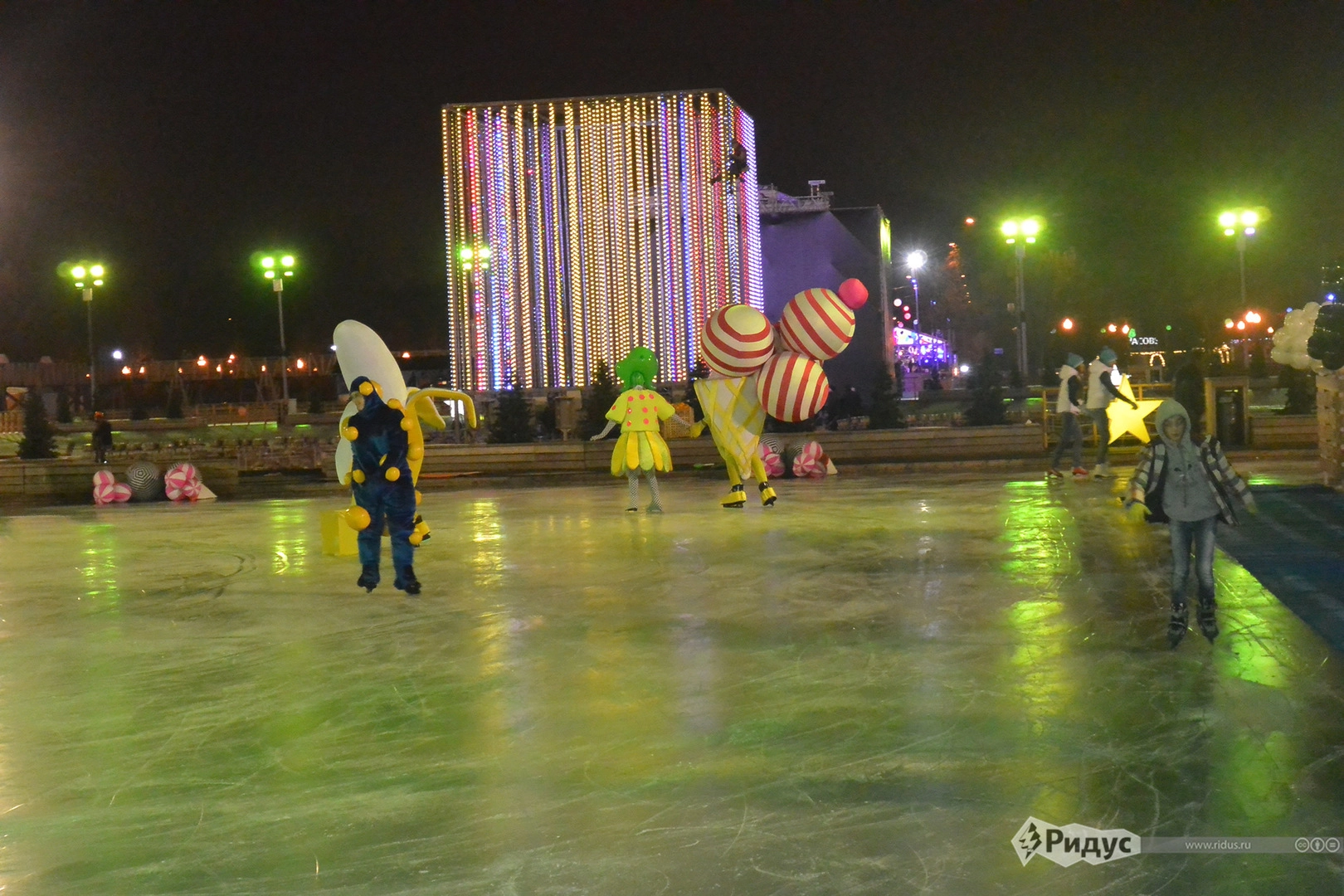 Каток порадует и любителей диско. Вечера в стиле диско будут проводиться на Фонтанной площади, где установят арт-инсталляцию - гигантский светодиодный куб. С его помощью 3D-аниматоры представят порядка 25 вариантов разноцветных диодных снегопадов и имитаций фейерверков.