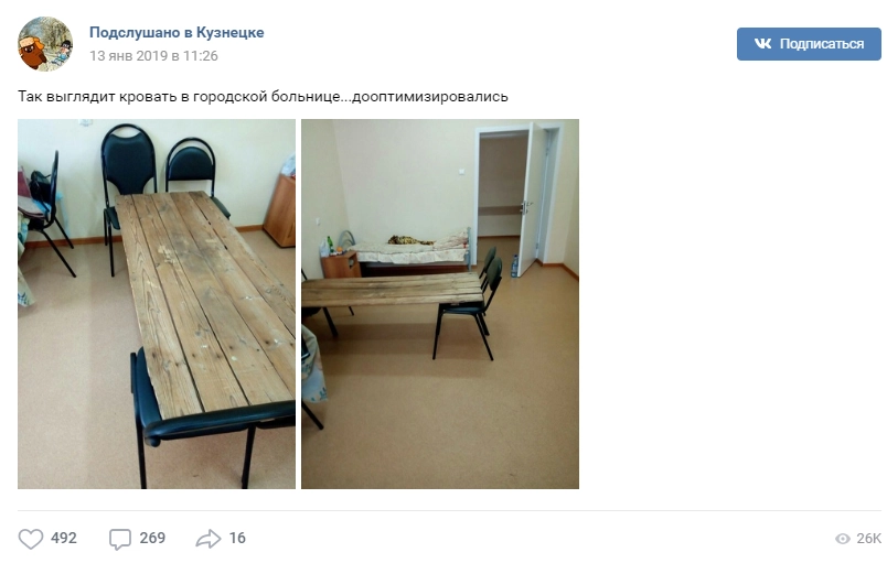 Администрация ГБУЗ «Кузнецкая межрайонная больница» поспешила разъяснить ситуацию. Сотрудник медучреждения Денис Денисов сообщил, что «на фотографии действительно представлена палата терапевтического отделения больницы».