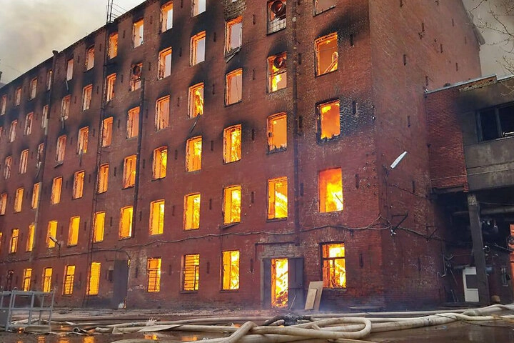 Пожарные более суток тушат горящее здание «Невской мануфактуры» в Петербурге. К вечеру понедельника, 12 апреля, возгорание удалось локализовать на площади в 10 тысяч квадратных метров. Работы по ликвидации огня продолжались всю ночь.