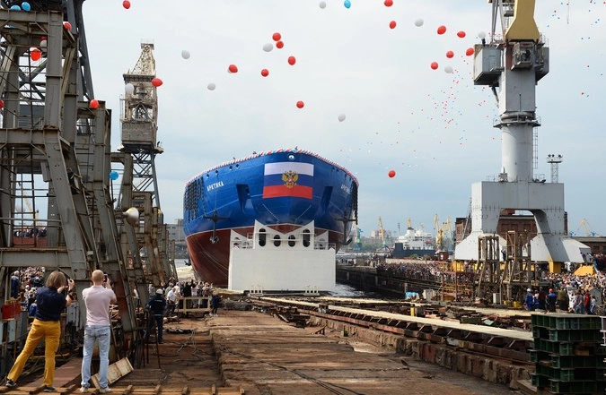 На Балтийском заводе в Санкт-Петербурге состоялся спуск на воду самого большого и мощного двухреакторного атомного ледокола в мире — ледокола «Арктика».