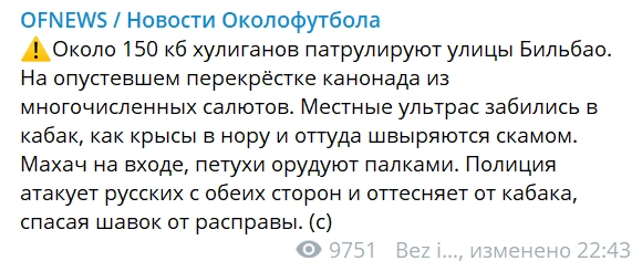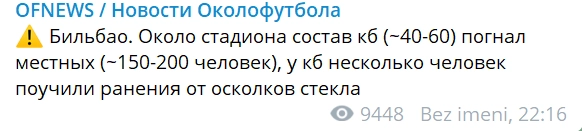 Впрочем драки в этот вечер вспыхивали в Бильбао еще в нескольких местах, в общей сложности, в потасовках принимали участие более 500 человек с двух сторон.