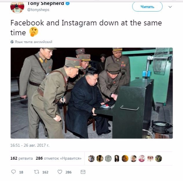 Об этих сбоях сообщали пользователи Twitter из разных стран. Они шутили и строили разные предположения относительно того, кто должен нести ответственность за произошедшее. Одним из виновников них даже назвали лидера Северной Кореи Ким Чен Ына.