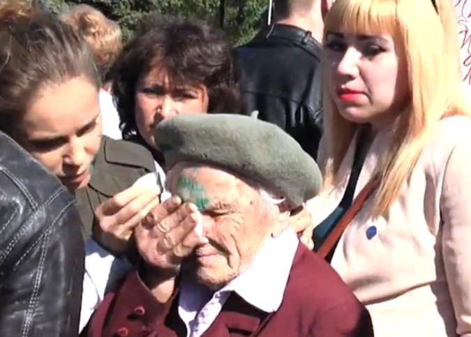 «После инцидента 9 Мая на шествии, посвященном Дню Победы, когда националисты из „Славянской Сечи“ плеснули зеленкой в лицо 91-летней ветерану ВОВ (Любови Печко), на следующее утро женщина скончалась», — сообщало местное издание «Информационный центр».
