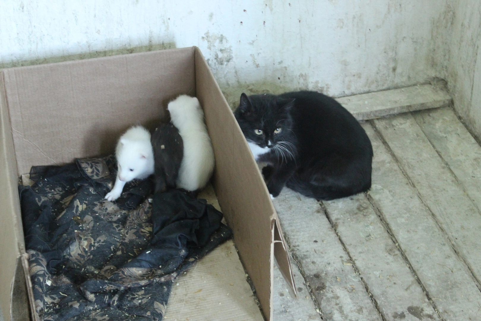 В зоопарке города Саранск произошла очередная удивительная история из мира животных. Енотовидная собака родила щенят, но не смогла кормить их по причине отсутствия молока. Тогда сотрудники решили подложить новорожденных зверят местной кошке Мурке, которая недавно окотилась. Целый месяц Мурка кормила щенков наравне со своим котёнком. Сейчас подросшие енотовидные собаки уже едят специальные смеси и мясо, но по-прежнему ни на шаг не отходят от заботливой кошки-мамы, которая одинаково любит и своих и приёмных детей.