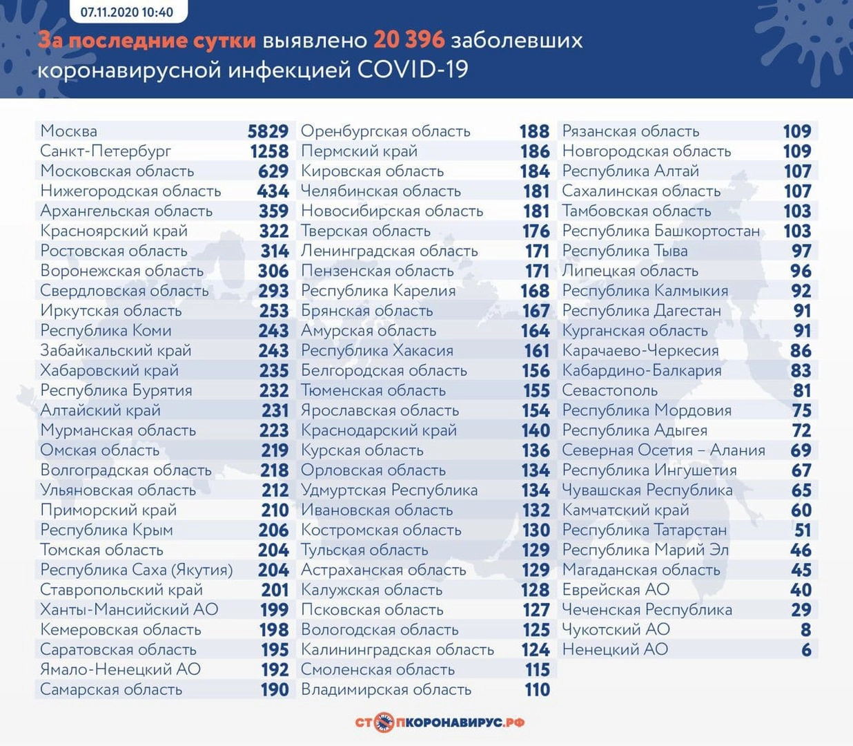 Количество заражений вторые сутки подряд превышает 20 тысяч. Лидерами по этому параметру остаются Москва, Санкт-Петербург и Московская область.