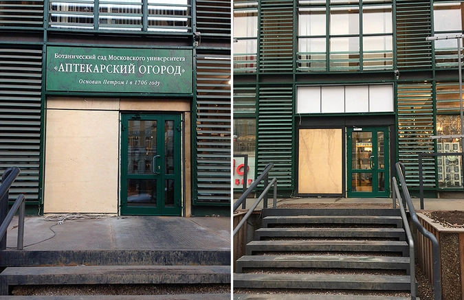 В середине минувшей недели глубокой ночью сотрудники Административно-технической инспекции по указанию Департамента СМИ и рекламы города Москвы демонтировали вывеску на Главном входе в Ботанический сад МГУ «Аптекарский огород».