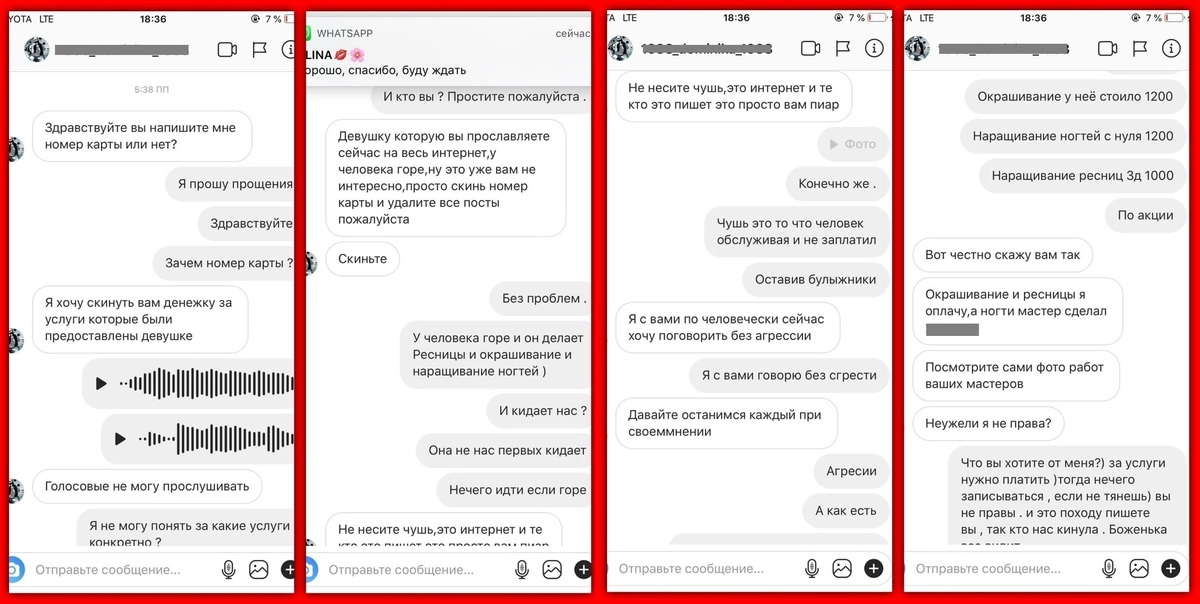 Посетительница салона также заявила, что за две услуги она расплатилась на месте. Мария также добавила, что опубликованные мастерами красоты переписки не имеют к ней никакого отношения.