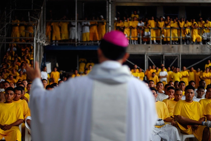 Капеллан проводит мессу тюрьме Изалько для членов банды 18-ой улицы. © Ulises Rodriguez/Reuters