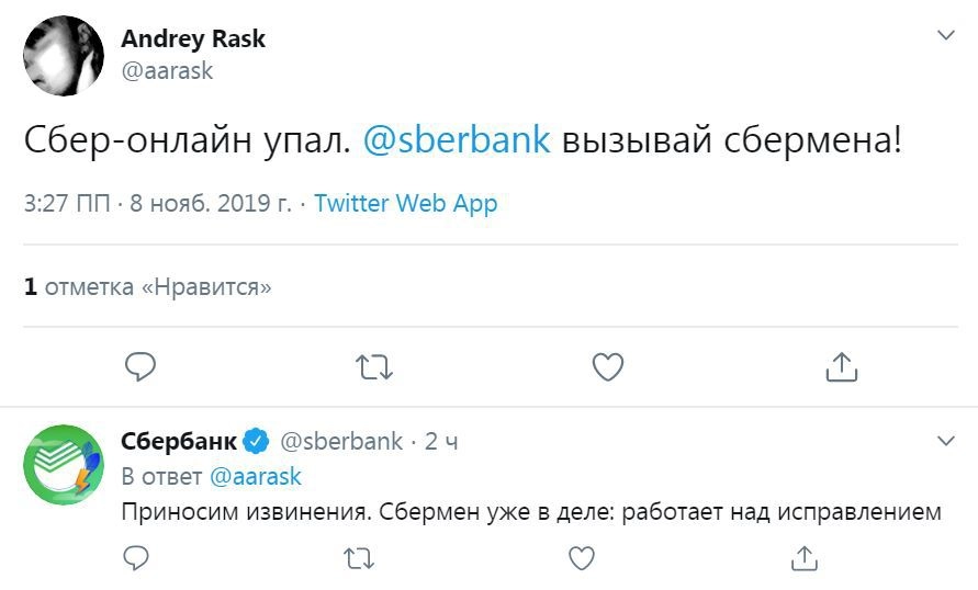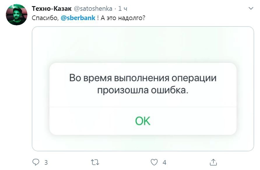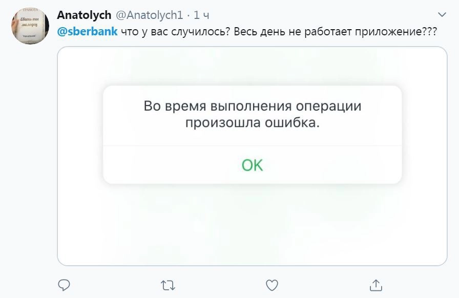 По данным ФАН, пользователи стали замечать неполадки примерно с 16.00 по московскому времени.В официальном Twitter банка подтвердили проблемы и принесли свои извинения клиентам. «Сбермен уже в деле», — пошутил SMM-специалист Сбербанка.