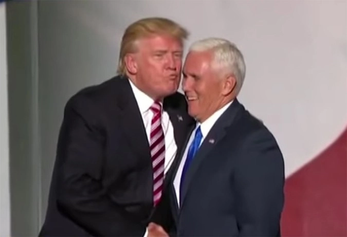 Интернет-пользователи обсуждают неловкий поцелуй официального кандидата на пост президента США от Республиканской партии Дональда Трампа с соратником по предвыборной гонке Майком Пенсом.