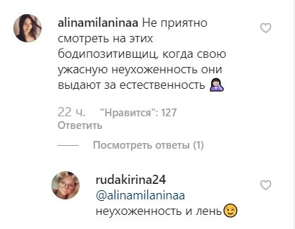 Я против сегодняшней тенденции превращения понятия „бодипозитив“ в синоним разнузданности, вседозволенности и неухоженности. Кто-то может считать для себя приемлемым и грязную голову, но для меня это всегда будет недопустимо, — отмечает в своем посте Решетова.
