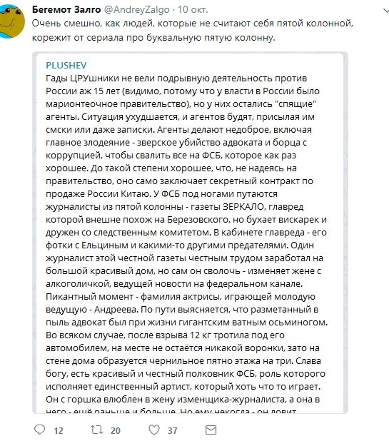 Журналист Олег Кашин назвал сериал «экранизацией страхов и иллюзий Кремля».