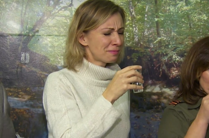 Участники мероприятия выпили «за встречу» — мужчины из граненых стаканов, а Мария Захарова пригубила водку из стопки. Зажмурившись, она улыбнулась на призыв кого-то из участников мероприятия «после первой не закусывать». Повременив, представитель МИД все же закусила солдатской кашей, приготовленной по рецепту времен Великой отечественной войны.
