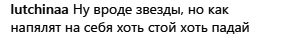 Непонимание вызвал у россиян и наряд актрисы Елизаветы Боярской. «Треш», «жесть», «уродство», «безвкусица», «явный Хахаливуд» — пользователи не скупились на обидные эпитеты в адрес российской знаменитости. По их мнению, неудачным было как само платье, так и обувь, аксессуары и даже золотой маникюр «новой Карениной». Некоторым это зрелище показалось настолько жутким, что им даже стало жаль Боярскую: «Неудачный образ (((испортили такую красотку… обидно», «У нас на рынке такое можно купить за 10 € 😝 ну прям обидно за такую красивую и талантливую актрису».