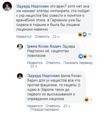 Врач-стоматолог из Киева Ирина Козак-Кедич отказалась лечить русскоязычных пациентов, если они не перейдут на украинский язык. Об этом она написала на своей странице в Facebook, передает издание «Страна.ua».