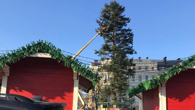 Увидев главную новогоднюю елку страны на Софийской площади в центре Киева, многие были шокированы этим зрелищем. Судя по всему, дерево очень сильно пострадало при транспортировке.