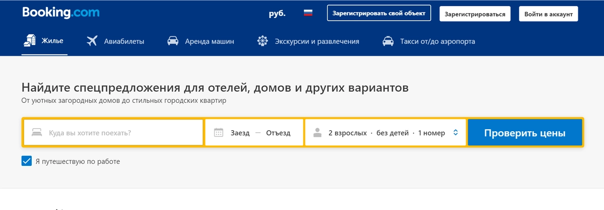 Популярный международный сервис Booking из-за санкций на полуострове не работает (точнее не работает для туристов, если поставить отметку, что командировачный, отели найдутся).