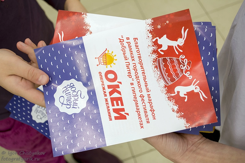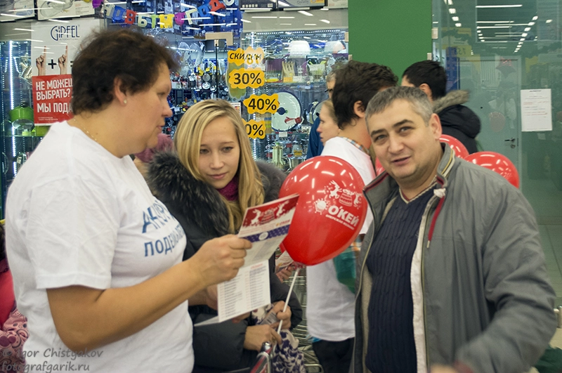 Традиционно фестиваль проводится в гипермаркетах О'кей, в одном из которых мне сегодня и удалось побывать. Я побывал, как всегда, со своим фотоаппаратом, в Гипермаркете О'кей на пр. Науки, где проходил сбор средств для РОО Аккорд.