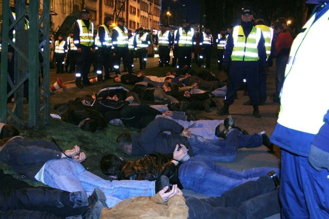 К 8 вечера 26 числа было принято решение, разогнать протестующих. Около 9 вечера послышались первые взрыва газовых гранат и, затем был применён водомёт.