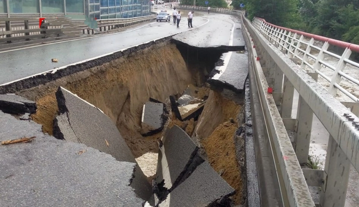 Как сообщает ФАН, размер обрушившегося фрагмента составляет 3 на 10 метров. Издание отмечает, что обрушилась часть дороги, прилегающая к ограждению, за которым после ливня набралась вода, продолжающая подмывать трассу.