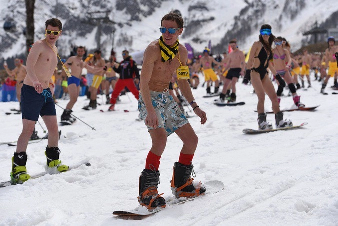 Со склонов сочинского курорта «Роза Хутор» на лыжах в купальниках и плавках спустилось более тысячи человек в рамках фестиваля-карнавала BoogelWoogel, сообщает ТАСС.