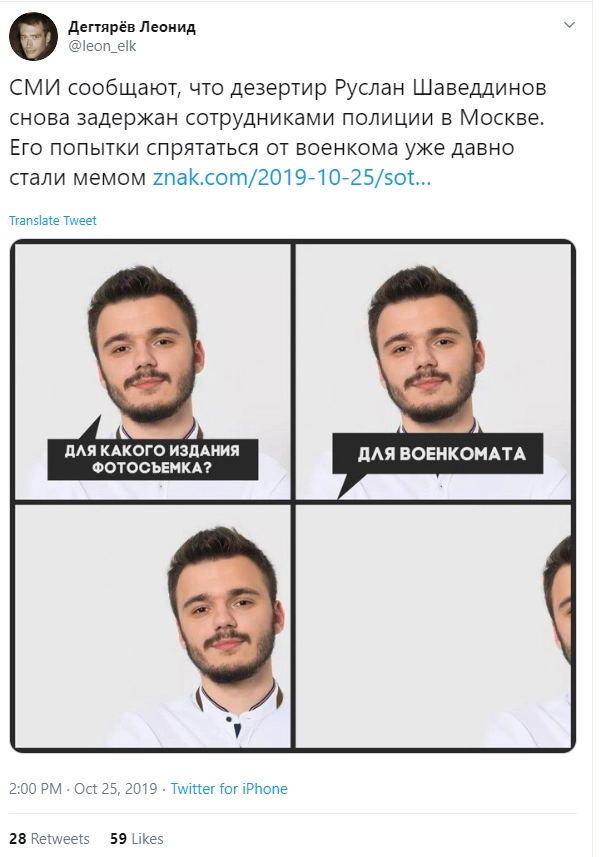 С чем связано третье задержание сотрудника ФБК, пока неизвестно. Однако в социальных сетях уже высмеяли Шаведдинова как злостного уклониста от воинской службы.