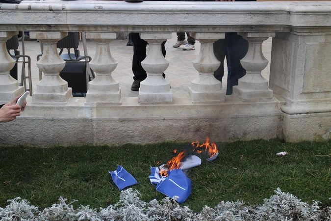 В Софии на митинге в поддержку Донбасса сожгли флаг НАТО