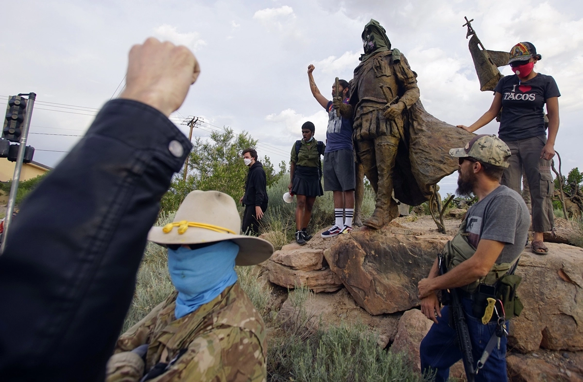 Как сообщает Reuters, у памятника конкистадору нашлись и защитники — вооруженные местные жители, входящие в так называемую Гражданскую гвардию Нью-Мексико. Начальник полиции Альбукерке Майкл Гейер заявил, что к правоохранителям поступают сообщения о неких «вооруженных группах», которые могли попытаться устроить у памятника провокацию.