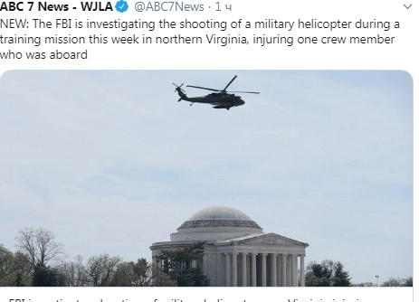 Неизвестные обстреляли 10 августа боевой вертолет UH-1N Huey ВВС США в небе над штатом Вирджиния. Один из пилотов получил небольшие повреждения. Расследование обстоятельств инцидента взяло на себя ФБР, сообщил сайт ABC News.