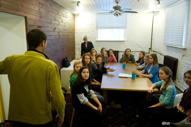Ученики одного из столичных лицеев, которые пришли в гости к «Ридусу», сразу отметили, что ожидали увидеть нечто совершенно иное. Офис информационного агентства представлялся им эдаким муравейником, где стоит шум и гам, суета и напряжение, а раздраженные редакторы поминутно ругаются с коллегами. Обстановка оказалась крайне дружелюбной, и поначалу представилась излишне расслабленной. Но, присмотревшись, ребята увидели напряженную работу, которая кроется за атмосферой домашнего уюта. Это обусловлено спецификой агентства гражданской журналистики, которое не располагает большим штатом сотрудников и перед которым стоят иные задачи, нежели перед крупными информагентствами. Особое впечатление на лицеистов произвел арт-символ «Ридуса» Илья Diliago, который продемонстрировал, как он подбирает темы для своих шедевров и создает их.
