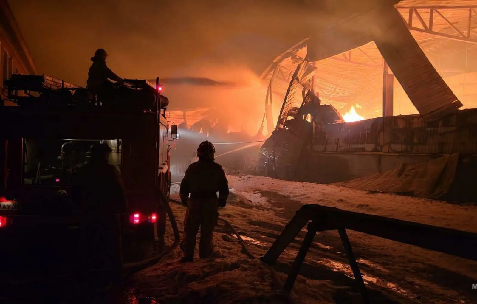 В Свердловской области горит ангар на площади 1600 квадратных метров
