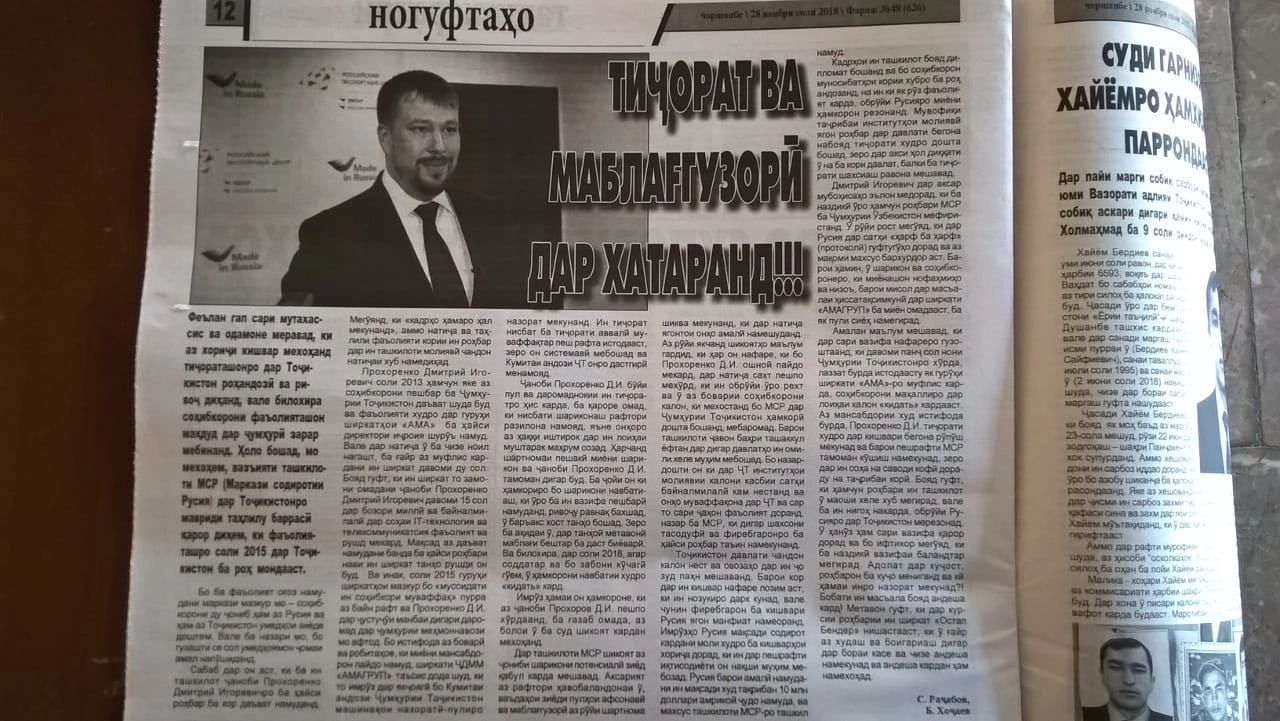 Судя по всему, уголовное дело в отношении ответственных лиц компании «АМА Груп» стало решающим ударом по репутации Прохоренко в Таджикистане.