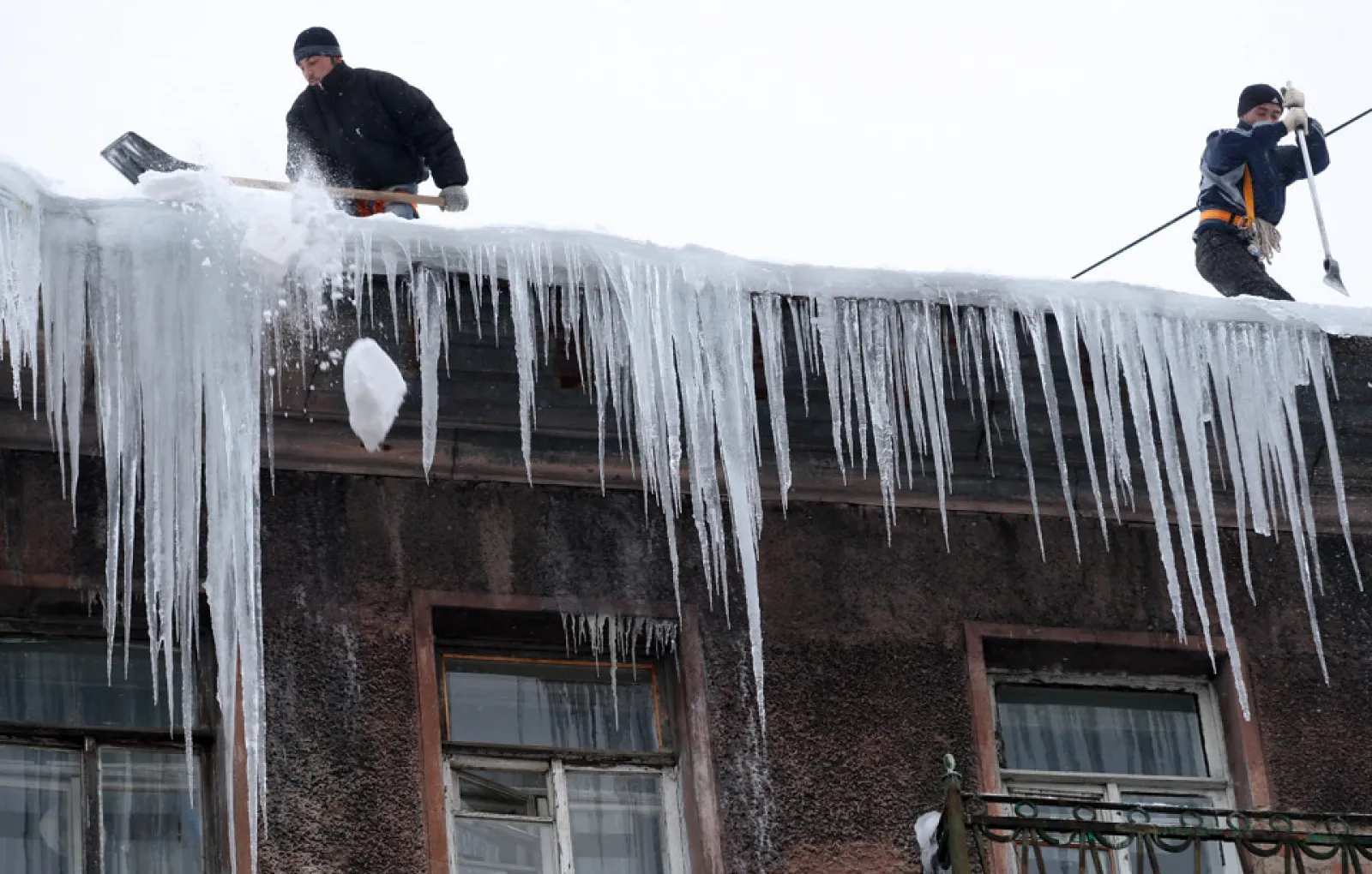 В Улан-Удэ снежная глыба упала на голову ребенку в коляске