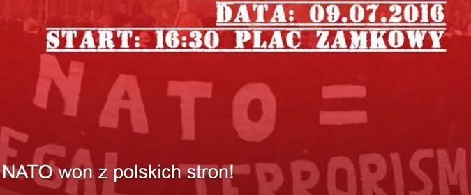 Мероприятие прошло под слоганом «Мы не хотим здесь НАТО! В Польше — только польская армия! Без НАТО! Без войны! Мы за мир!».