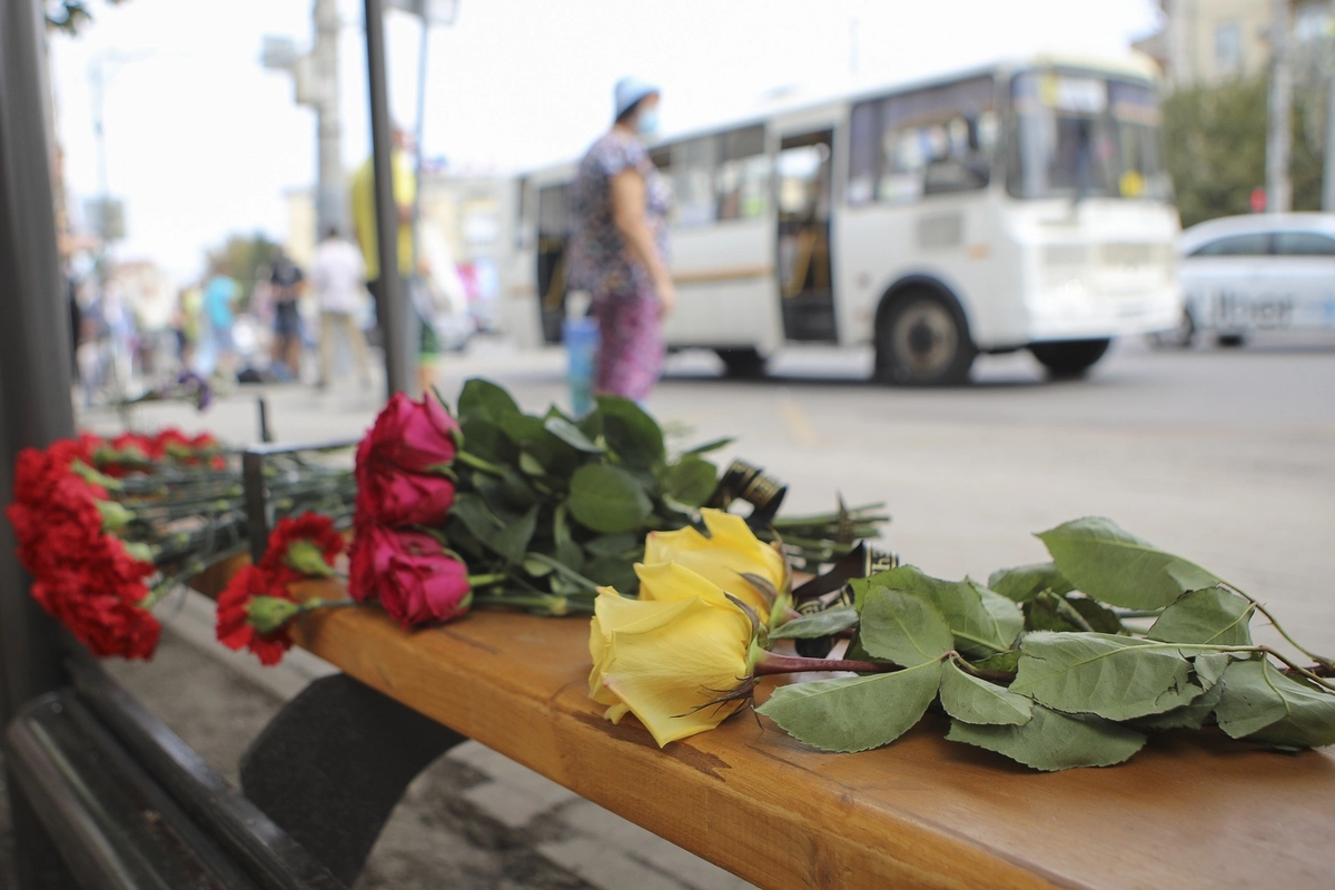 В Воронеже несут цветы к остановке, где накануне произошел взрыв автобуса