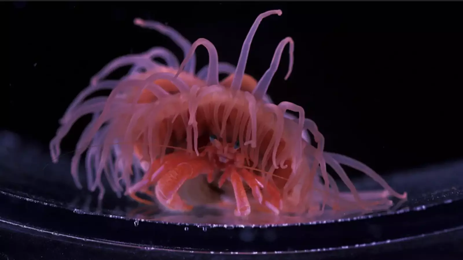 Биологи открыли новый вид морской анемоны из класса коралловых полипов, которую краб-отшельник носит как шляпу. Актинии, найденные на морском дне у берегов Японии, получили название Stylobates calcifer в честь персонажа из мультфильма «Ходячий замок».