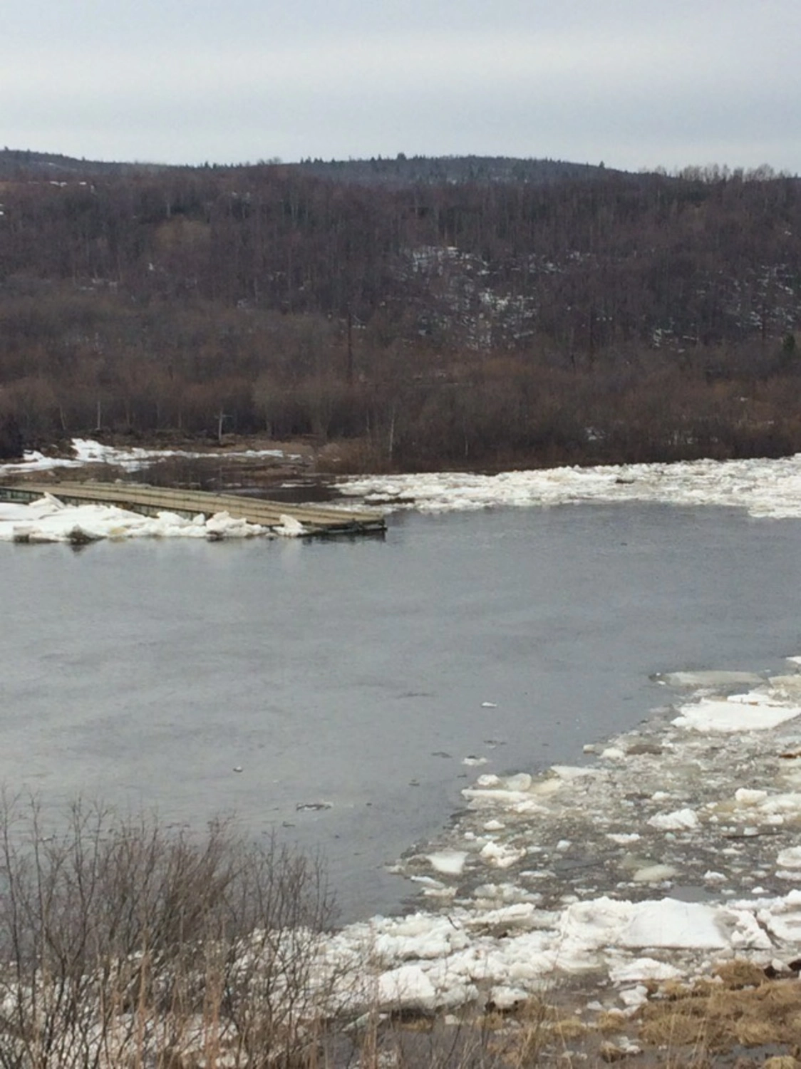 В поселке Шонгуй Мурманской области во время ледохода на реке Кола снесло два пролета временного моста, построенного военными Северного флота в 2017 году