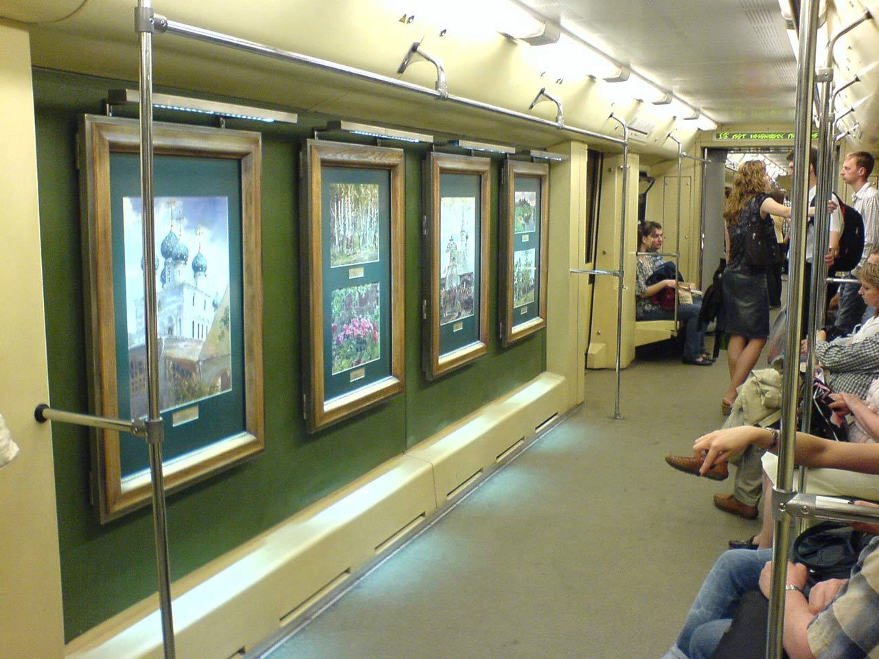 4. Также, в московском метро курсирует поезд, который зовется «Поезд акварели», внутри которого показаны репродукции знаменитых работ, которыми могут любоваться пассажиры.