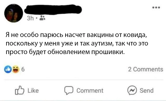 В начале пандемии коронавирусной инфекции люди шутили про страх забрать заказ из Китая, позже про закрытие границ, карантин и бедных котов, которым приходилось терпеть сидящих на удаленке людей. Сейчас же основным предметом приколов стала вакцинация, которой люди не очень-то и доверяют.