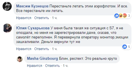 „Аэрофлот“ на мое обращение, спустя месяц, ответил банальной отпиской „мы не несем ответственность за работу аэропорта и сотрудников ФСБ, формально мы ничего не нарушили и ничего вам не должны“. Ни слова в ответ на требование разъяснить, что означала фраза „Свободных мест в самолете нет“, — подытожил пассажир.