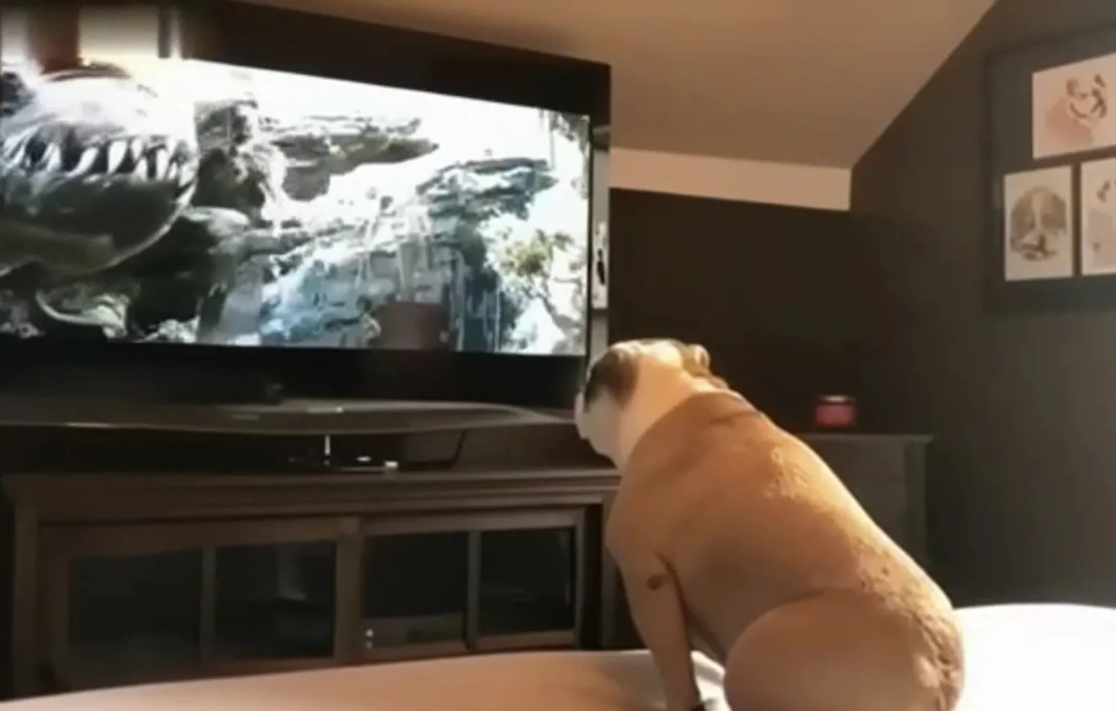 «Вау! Как круто!»: увлеченный просмотром фильма бульдог поразил Сеть