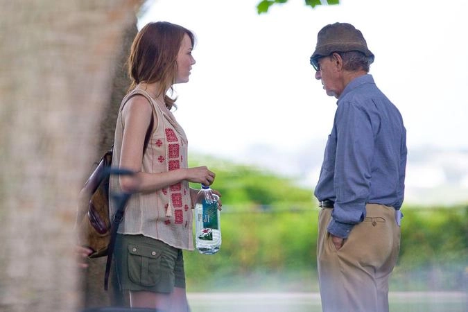 Вуди Аллен и Эмма Стоун на съёмках фильма «Иррациональный человек»