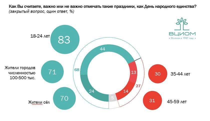 Примечательно, что среди тех, кто считает важным отмечать День народного единства, в основном, молодые люди в возрасте 18−24 лет (83%).