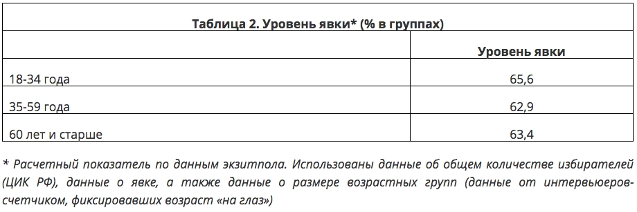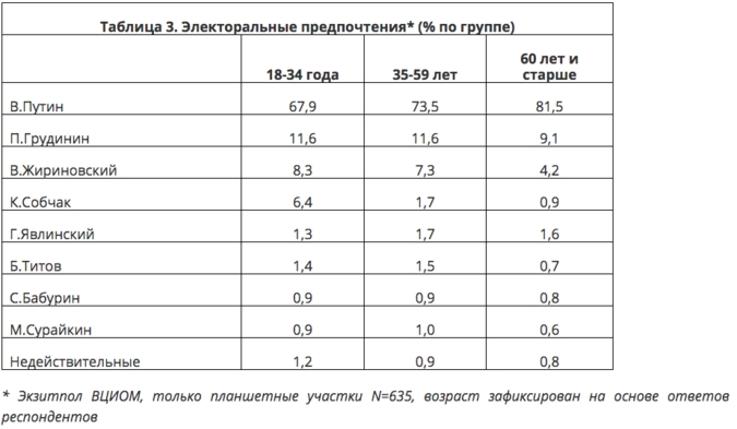 Молодежь приняла активное участие в президентских выборах: по данным Всероссийского центра изучения общественного мнения (ВЦИОМ), явка среди избирателей в возрасте 18—34 лет составила 65,6%.