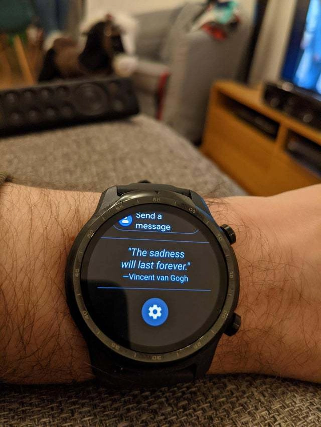 Реддитор рассказал, что недавно решил отказаться от антидепрессантов. Но его смарт-часы посчитали, что он делает это напрасно. В первый день отказа от лекарств пользователь Reddit увидел на экране часов цитату художника Винсента Ван Гога: «Печаль будет длиться вечно».