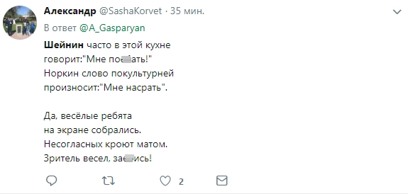Сам Артем Шейнин, комментируя радиостанции «Говорит Москва» мат в прямом эфире федерального канала, снова перешел на нецензурную брань.
