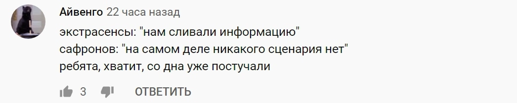 Со слов Сафронова, если раньше многие критиковали его за попытки помешать экстрасенсам проходить испытания, то теперь эти же люди разуверились в шоу и считают, что «вообще все это подстава».
